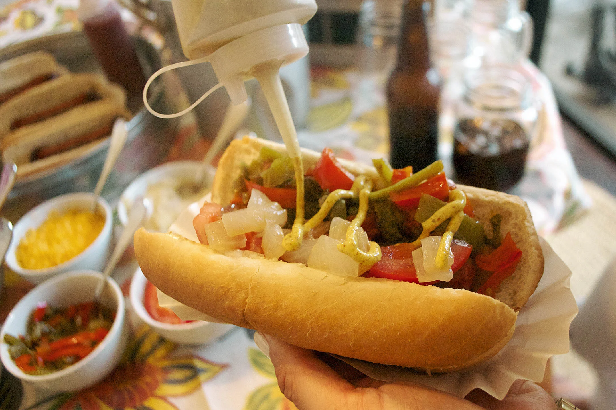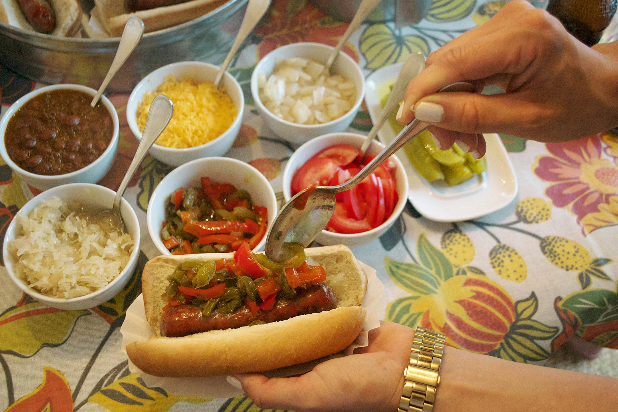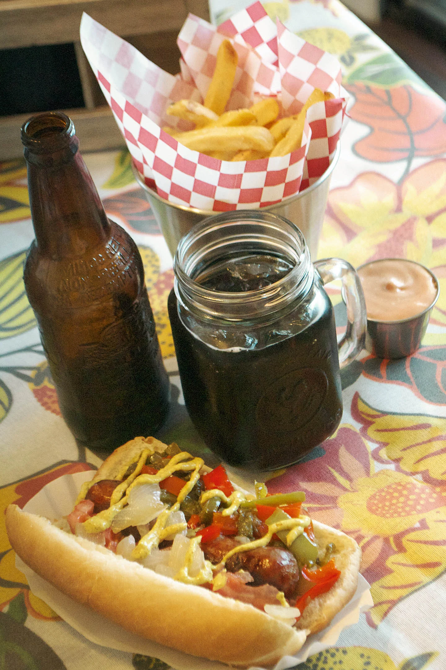 For Father's Day I wanted to create a little party that was just for the guys and what says Dad more than root beer and brats? I knew that a BBQ was the perfect thing so I made a gourmet hot dog bar complete with chili, shredded cheese, grilled onions, chili peppers, tomatoes, and pickle wedges. And of course you can't have a bbq without some garlic cheese fries accompanied with fry sauce. My secret to making this delicious sauce is that I add bbq sauce and a little worcestershire to the mayonnaise and ketchup mix. So I hope you have a great weekend celebrating the top dogs in your life!!