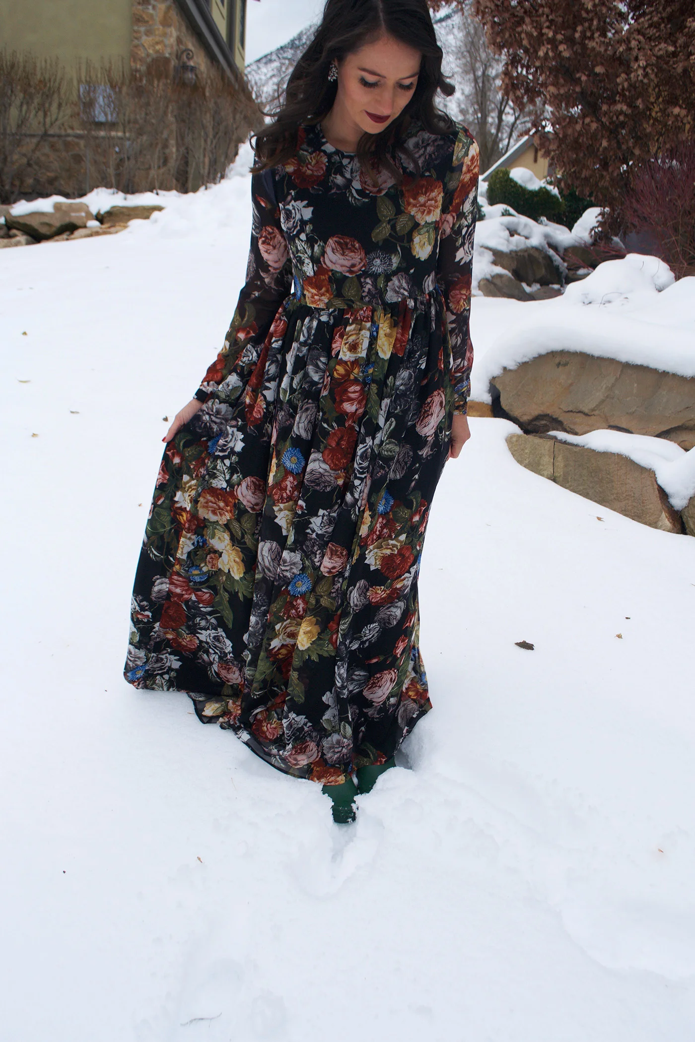 With Christmas being just days away, I'm so excited for the giveaway I have this week that is the perfect gift for someone on your list or for yourself to spruce up your wardrobe! One of my favorite places to find fabulous skirts and dresses is Shabby Apple and they are giving away a $50 gift card so you can have fun shopping online or by visiting their store at Fashion Place Mall in Murray, Utah. There are so many cute items in their store right now like this this winter bouquet dress that I fell in love with right away. I am always a sucker for floral print and these colors are so pretty together, plus the long maxi length makes it so romantic and pretty for winter. With all the cute things they have to offer I'd hurry on over to my instagram @chelseyhale to enter if I were you!! The giveaway will end 12/24. Good luck!!