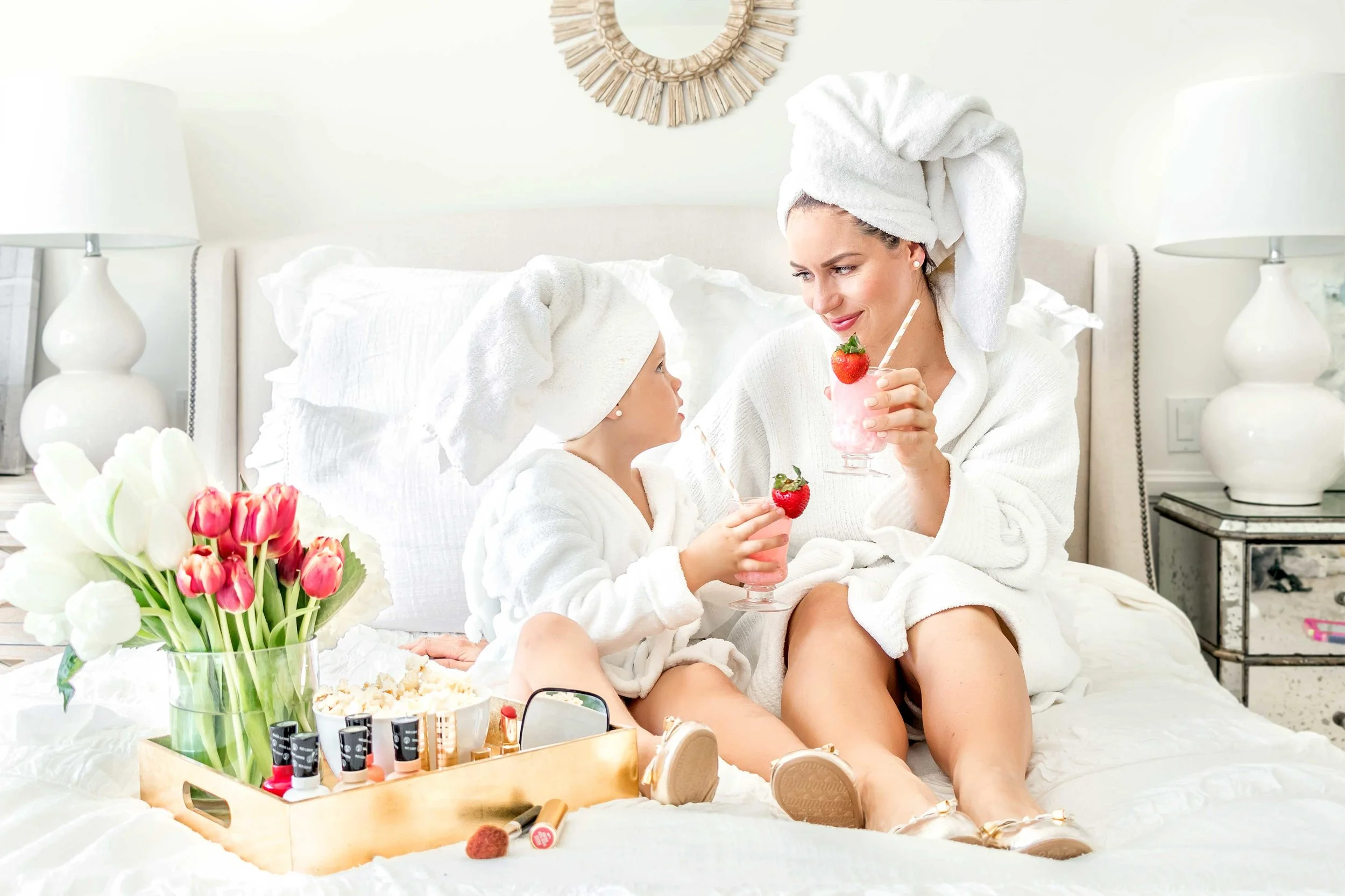 When I got pregnant this last time, we really tried to give our two other kids as much attention as we could because I knew my time would soon get taken up by a new baby. We planned different date nights with each of them and one thing I started with Capri is a girls spa date. Instead of going out to get our nails done like we usually do, we decided to stay at home and do all things girly. I let Capri pick what she wanted and the list contained a big jacuzzi bath tub, painting our nails in all the pink shades, doing makeovers, putting on all my jewelry, and then twirling around in dress ups. She also picked the pink drinks and popcorn to go with the dance party and pillow fight to end the night. Now we've started a tradition that I hope will continue even when she's grown up and wants to go to a real spa;) I love this age she is at so much where she is getting older and can chat my ear off, but she's also still my baby girl who wants to be a princess ballerina and giggles over everything. We both have our birthdays back-to-back this week so it's a perfect time to put on our matching Talaria gold flats that are the most comfy slip-ons and have some girl time with my one and only. I love these cute new little girl shoes that they just launched because they are easy to fold-up and take anywhere or just where around the house when you want to be comfy. I really hope she'll always want to twin with me.